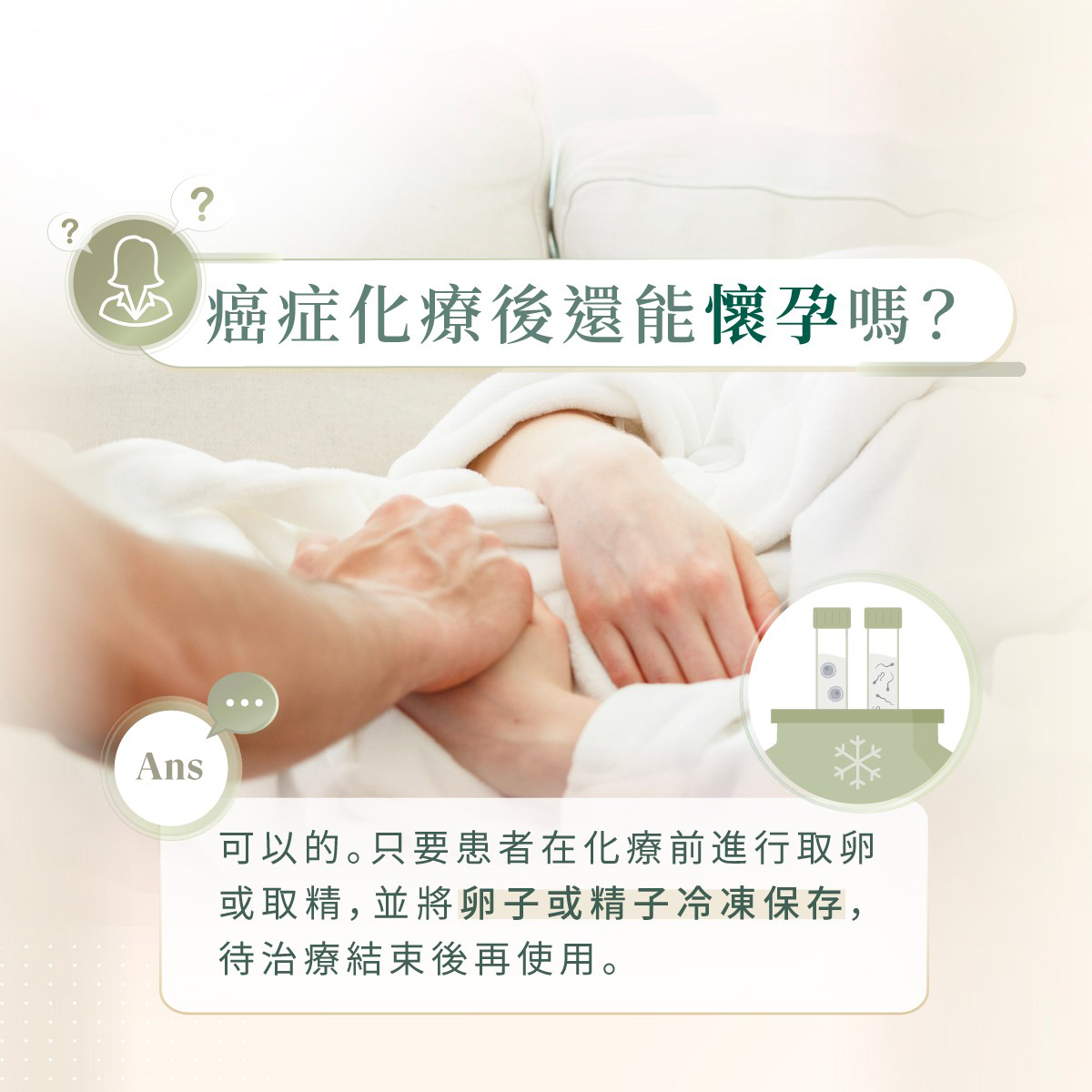 - 癌症或遺傳疾病病人,而需要接受可能影響生育能力的治療(如電療、化療等,有機會影響卵巢功能)