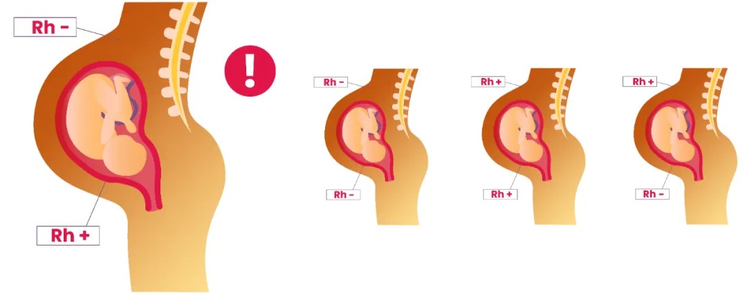 Rh陰性血媽媽如果孕育Rh陽性寶寶,兩者血型不合,可能造成同種異體免疫反應。Rh陽性胎寶寶的Rh (D)抗原,就像是一種異物,會刺激孕媽媽的體內產生抗體。抗體和抗原是「天敵」,如果孕媽媽體內的抗體,通過血液迴圈從胎盤進入寶寶體內,和寶寶的Rh (D)抗原相遇,就會攻擊寶寶的紅細胞,引致紅細胞破裂,導致胎兒出現溶血性貧血、低蛋白血症、水腫胎甚至胎死宮內等,這種情況就叫做Rh溶血病。